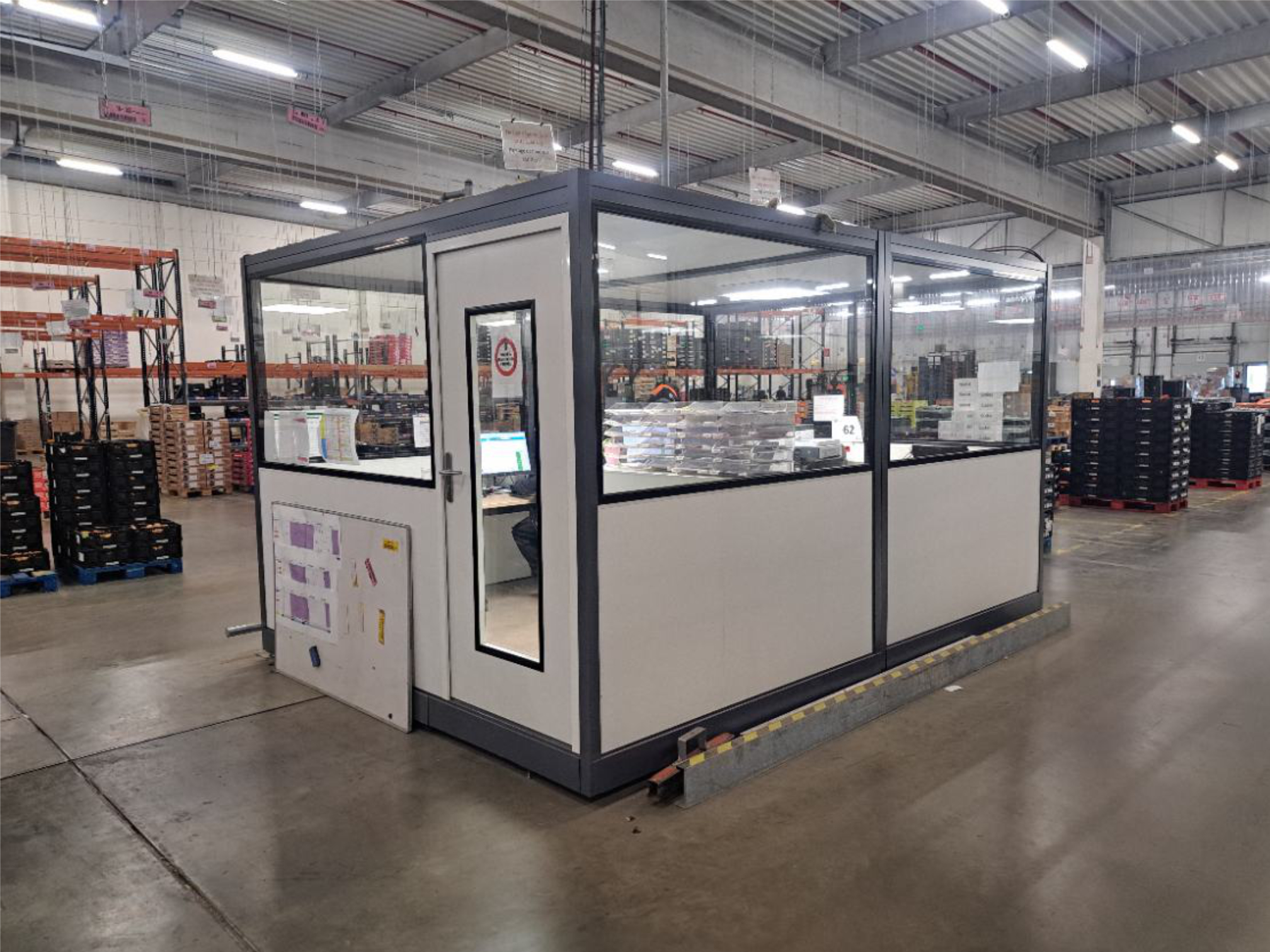 Les cabines s’intègrent harmonieusement dans les bâtiments logistiques tout en offrant un véritable espace de travail confortable et fonctionnel.