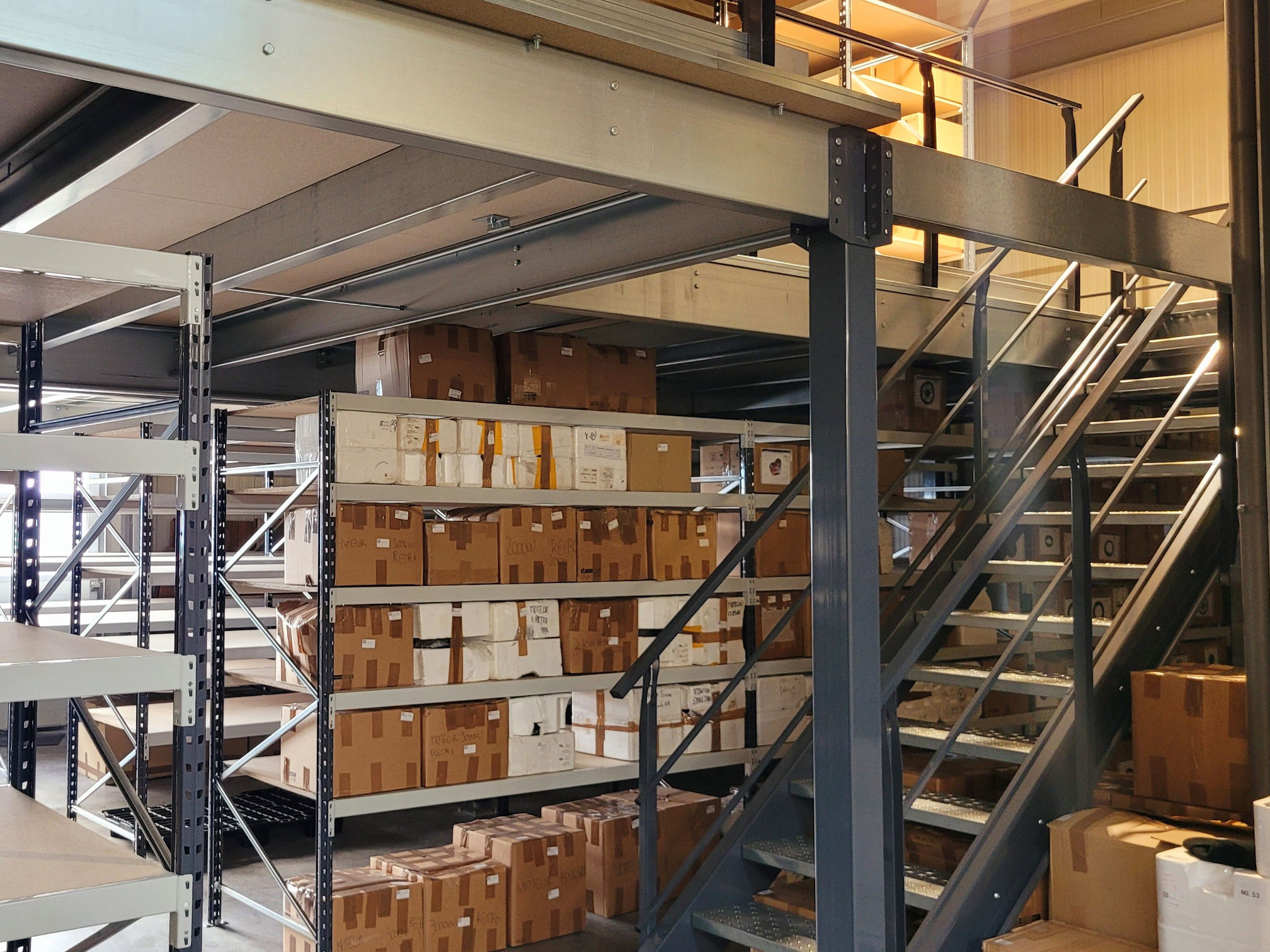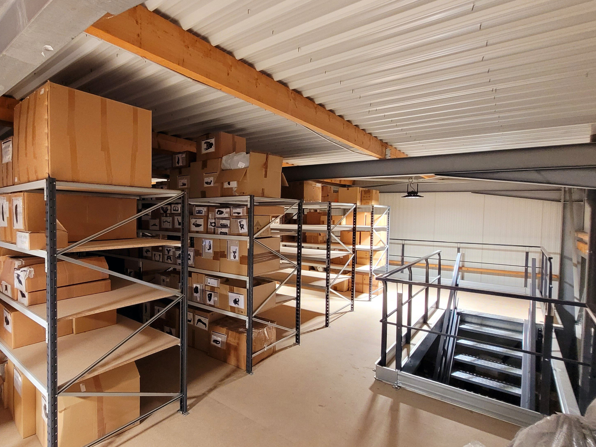 Le projet a permis la mise en place d’un stockage sur deux niveaux, optimisant pleinement la hauteur du bâtiment tout en améliorant la circulation, l’accessibilité des pièces et le confort de travail des équipes
