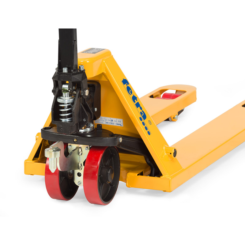 Permet d´embarquer un transpalette non chargé. En acier galvanisé. A visser sur l´axe du transpalette. La longueur totale se rallonge de 100 mm.