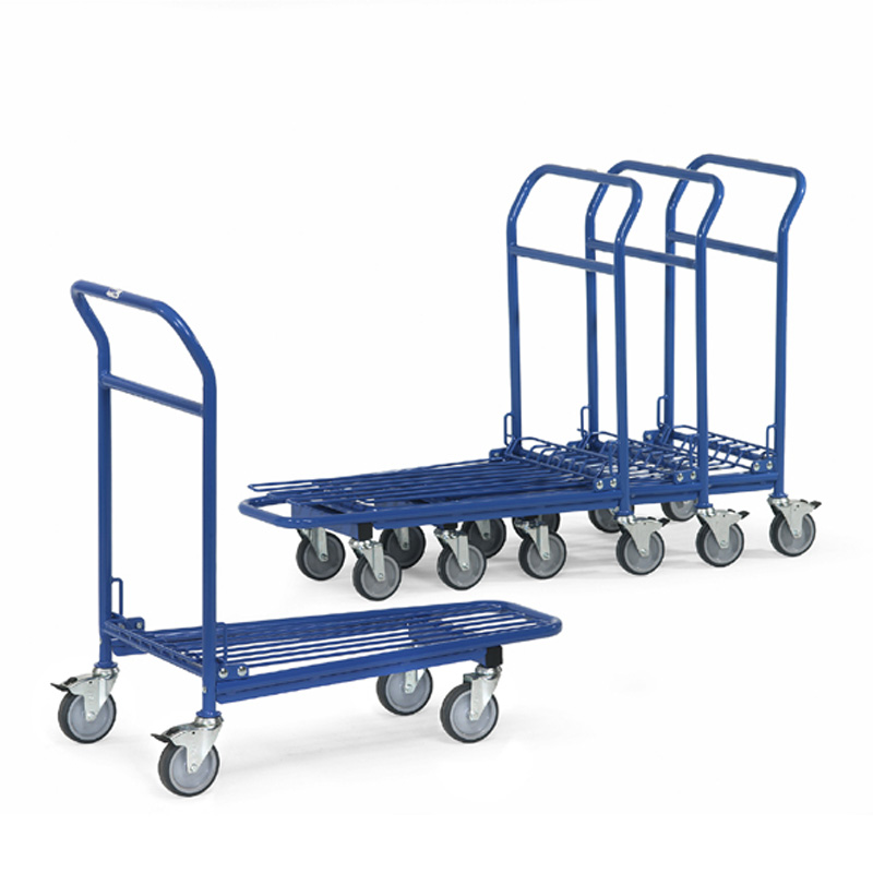 | Réf.art. | Charge kg | Hauteur plateau mm | Dimensions utiles L x l mm | Dimensions extérieures L x l x H mm | Roues mm | Poids kg |