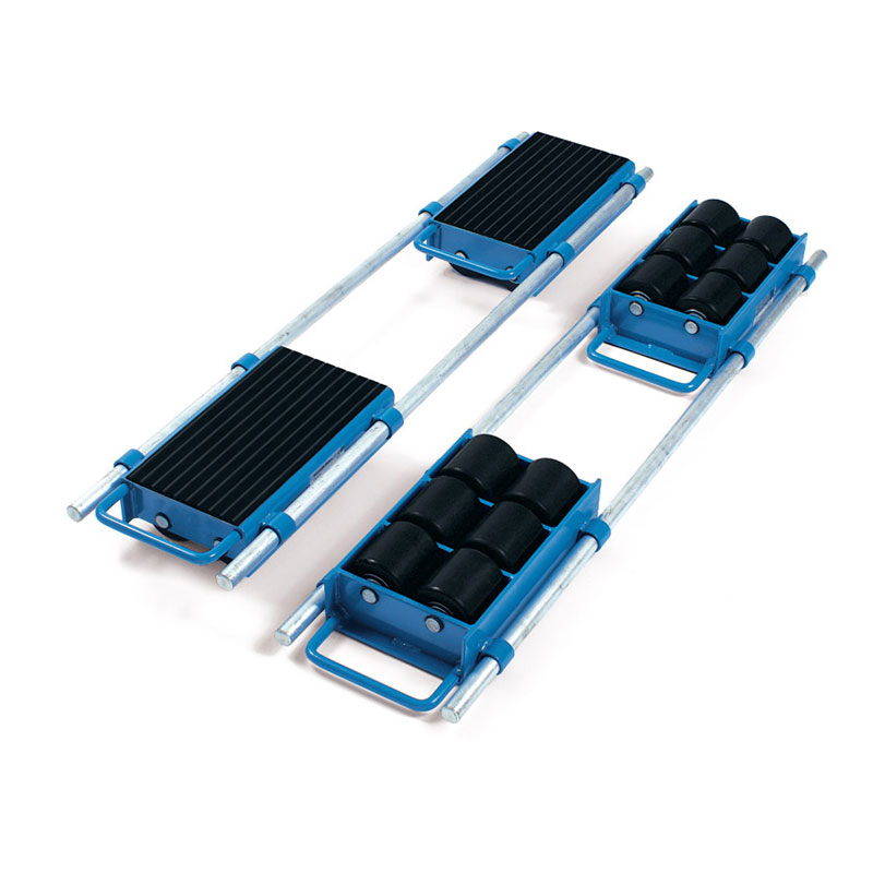 Construction solide en acier avec poignée en tube d’acier, revêtement époxy bleu RAL 5007. Platine recouverte de caoutchouc antidérapant. Pour un transport aisé et sûr d’objets lourds tels que : bacs, caisses, machines, etc?. Grands galets en nylon à roulement à billes.